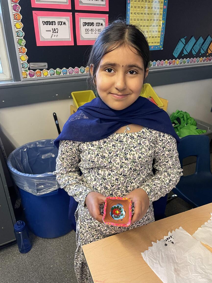 With so many obligations, it can be challenging to slow down and take the time to connect with people, but these connections are at the heart of everything we do. Building relationships and trust with all stakeholders results in individuals opening up and sharing their identities, thoughts, beliefs and culture with us. And a connection with culture, a large part of our identities, creates a strong and vital sense of pride. When we make an effort to celebrate cultural events, when children can see themselves represented at the school level, we are strengthening that sense of belonging that we hope all students can attain as they learn each day. Seeing the look of pure joy and surprise on the faces of the dancers and MC's at Clearbrook's Diwali Assembly this fall as they walked into the gym - dimly lit, but sparkling with hundreds of twinkle lights, paper luminaries, sarees, flowers and colour - was exactly what we hoped for. Teachers Sonya Neufeld and Rozy Makkar were able to spark that excitement for Diwali, and because of their longstanding connection with and knowledge of the community, were able to draw in parents/family members for the celebration, which is a priority at Clearbrook this year, as we open up post-pandemic.