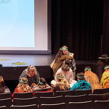 On April 27, 2022, at Abbotsford Arts Centre, the Mamele’awt Community Indigenous Education Centre honoured the 2022 Indigenous Role Models. Before entering, Role Models were covered with a blanket as a way of claiming the students, giving them a warm hug, and helping them on their journey forward, along with a headband to remind them to have good thoughts and a good mind. Chris Silver, Councillor of Semá:th First Nation began the Ceremony with a welcoming song and explained the importance of the Ceremony. Mr. Perry Smith, Director of Curriculum, was the traditional speaker and further explained the meaning of the day and how protocols are in place to ensure the Ceremony is done well, with a good heart and a good mind. Students were brought in by Tyrone Thomas, Jessi Old Coyote, and Tlatsemot leading in an honouring song as the students were brought forward into the space. Each student was honoured on stage by either their Indigenous Support Worker or Teacher for Indigenous Success, who expressed each student's hard work, dedication to culture, and future goals which brought them to be honoured as Role Models. The day was filled with gratitude and inspiration as we celebrate these students' accomplishments. The Honouring Ceremony was live-streamed and can be viewed on the Abbotsford School District YouTube page.